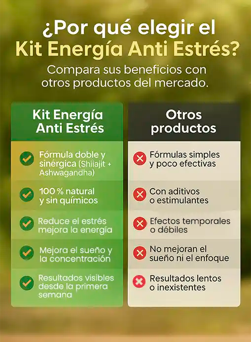 El Kit ya combina dos adaptógenos potentes, por lo que no necesitas añadir otros productos energizantes.